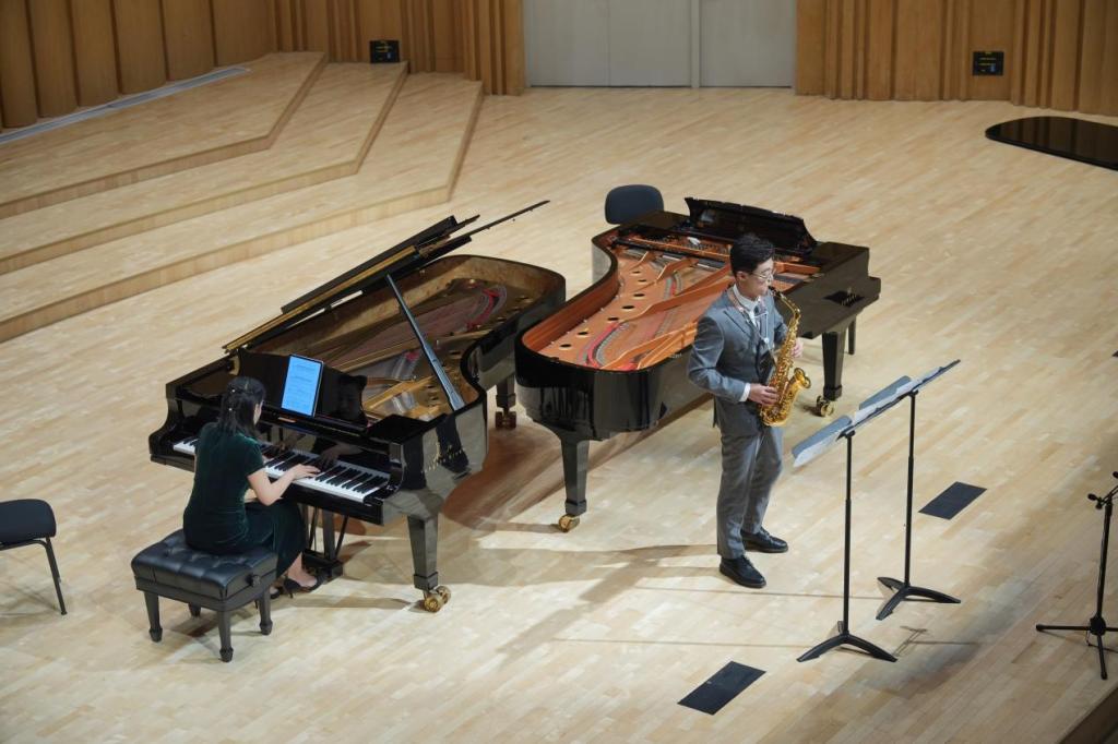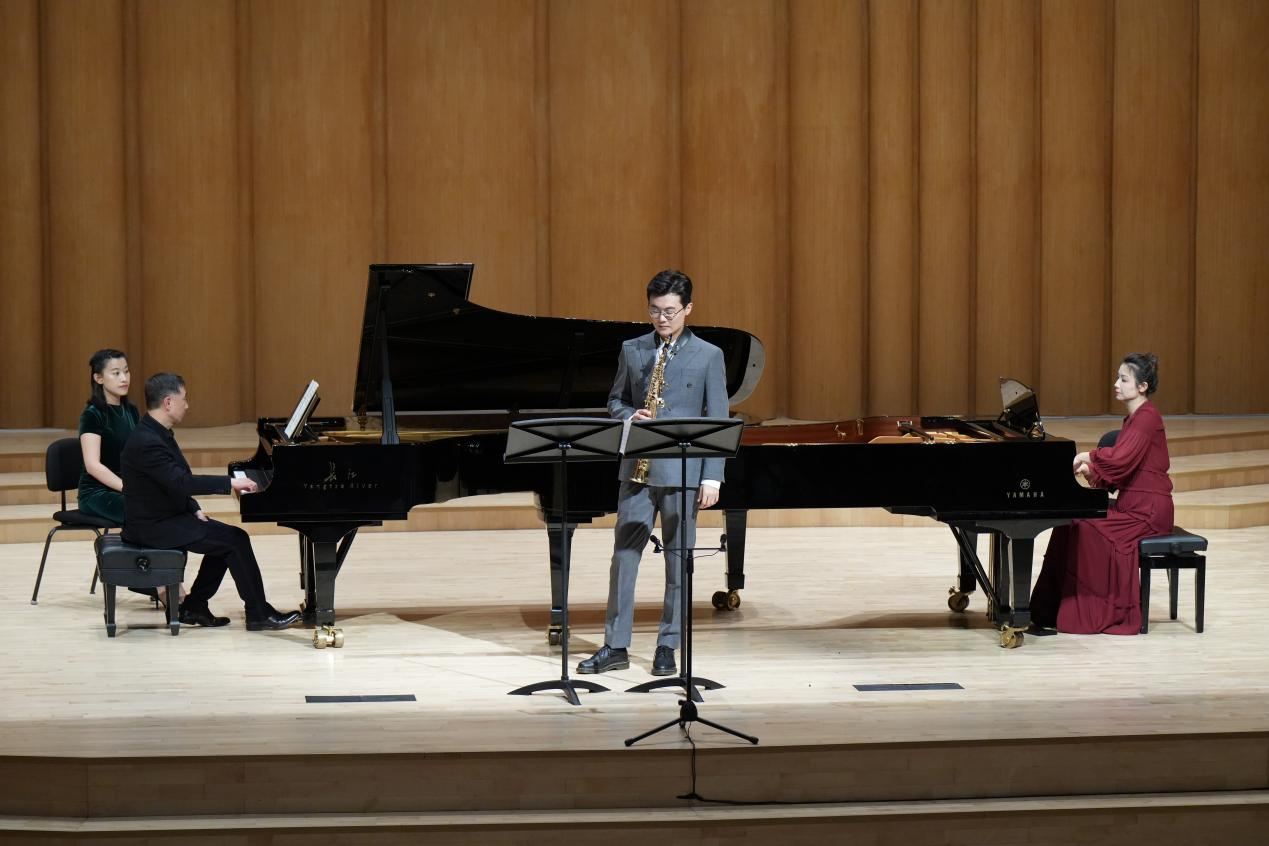 2024年9月27日,中北大学艺术学院的张记晨博士应邀在深圳宝安1990音乐厅举办了一场别开生面的音乐会。此次音乐会由张记晨博士携手中央音乐学院魏小凡教授、中国人民大学刘琉教授,以及旅美青年钢琴演奏家刘梦博士,共同演绎了由中国音乐学院姜万通教授为萨克斯管创作的作品《西北谣》和《鸿雁主题随想曲》。张博士的精湛技艺和深情演绎,配合现场极具感染力的氛围,使得音乐会效果非凡,观众反响热烈,广受赞誉。