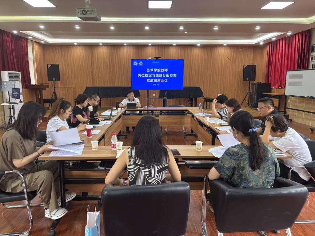 为进一步深化人事管理制度改革,优化人力资源配置,健全激励约束机制,全面提升学院治理效能,艺术学院于2025年7月9日下午3点在鸿学楼二层东厅召开党政联席会议,审议并通过了“艺术学院教师岗位核定与绩效分配方案”(以下简称《方案》)。学院党政领导班子及教师代表出席会议,会议由院长王燕平教授主持。