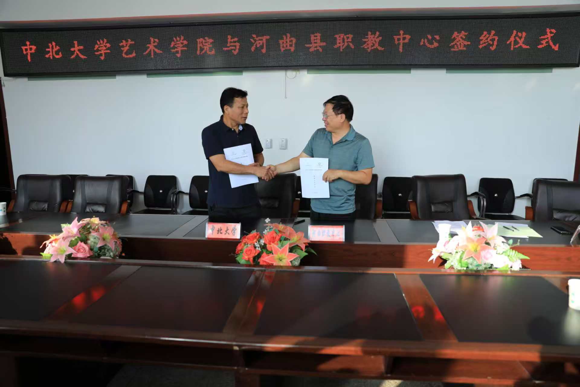 2025年9月6日,中北大学艺术学院与河曲县巡镇中学(河曲职教中心)在河曲县开展艺术教育交流座谈,并正式签订艺术人才共同培养合作协议。此次校地联动以深化艺术教育协同、推动高校人才培养与地方职业教育提质为目标,为双方资源共享、共育艺术人才搭建起合作桥梁。