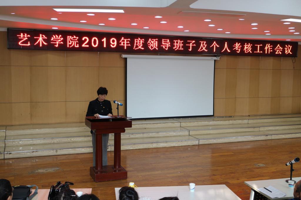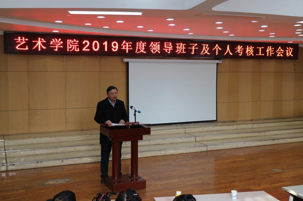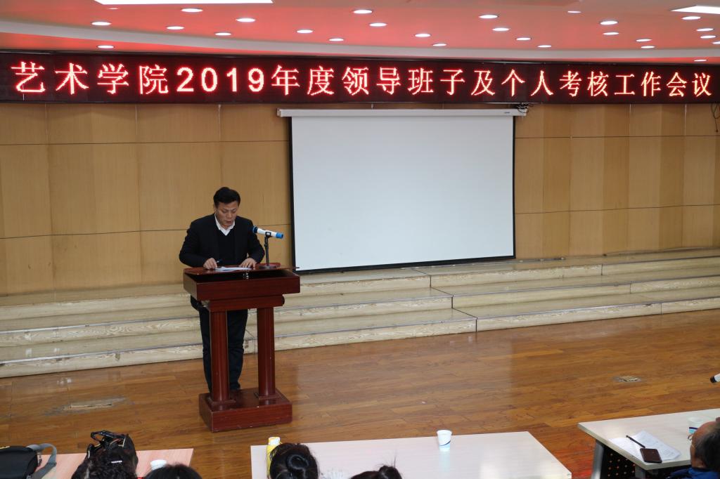 2020年1月8日下午,艺术学院在12号楼东厅召开2019年度领导班子及领导干部个人述职述廉会议。由副校长赵贵哲、副校长苏铁熊带队一行八人组成的考核组成员,以及学院领导班子和全院教职工参加了本次会议。会议由副校长赵贵哲主持。
