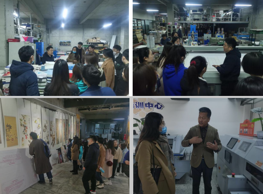 在承方负责人刘经理的带领下,同学们逐一了解了数码印刷及UV印刷技术,通过参观各类机电一体自动化产品、数控设备、工艺品、打印设备和装订设备,同学们了解到印前和印后的延续,并学习到印刷新技术、不同种类的印刷材质以及工艺,如:烫金、烫银、起鼓、UV、凹凸印等。过程当中负责人结合公司的陈列品,向同学们介绍了各类设备的功能和各自的特点、制作成本以及适用方向。