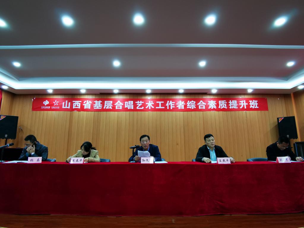 本次培训由山西省文化和旅游厅主办,山西省艺术研究院、山西省合唱协会、中北大学承办。山西省艺术研究院院长孙文生、山西省艺术研究院副院长王春平、中北大学艺术学院院长王燕平、山西省艺术研究院正处级干部刘宇出席开班仪式并发表重要讲话,会议由山西省艺术研究院张磊主持。