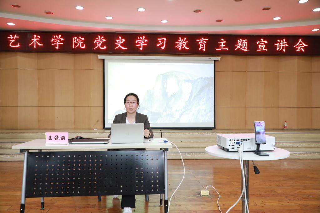 2021年3月30日下午,艺术学院党委邀请中北大学党史学习教育宣讲团王晓丽老师以《毛泽东诗词中的党史》为题,为全院师生党员作了专题讲座,学院党委书记夏瑞丽主持。