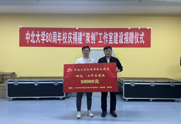 为迎接中北大学八十周年校庆,庆祝母校80华诞,2010届校友庞晶晶夫妇为学院捐赠总价值50000元的科技艺术“双创”中心建设资金,专项支持艺术学院科技艺术双创中心的硬件改造和后续的创新创业实践教学工作。