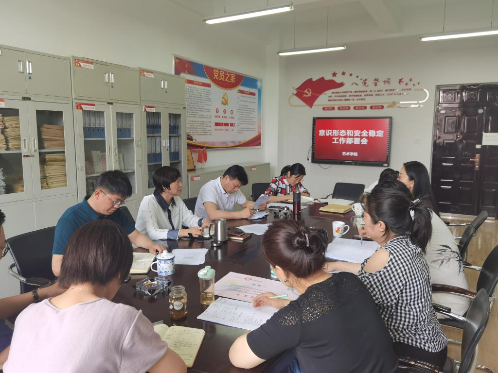 为进一步加强学院意识形态工作,落实党管意识形态原则,牢牢掌握意识形态工作的领导权、主动权,不断提高全院师生政治觉悟和思想敏锐性,艺术学院6月2日在9号楼5层小会议室召开了意识形态和安全稳定工作部署会。学院党委书记夏瑞丽,院长王燕平、党委副书记田维飞和各党支部书记及科室负责人参加会议。党委书记夏瑞丽主持会议。