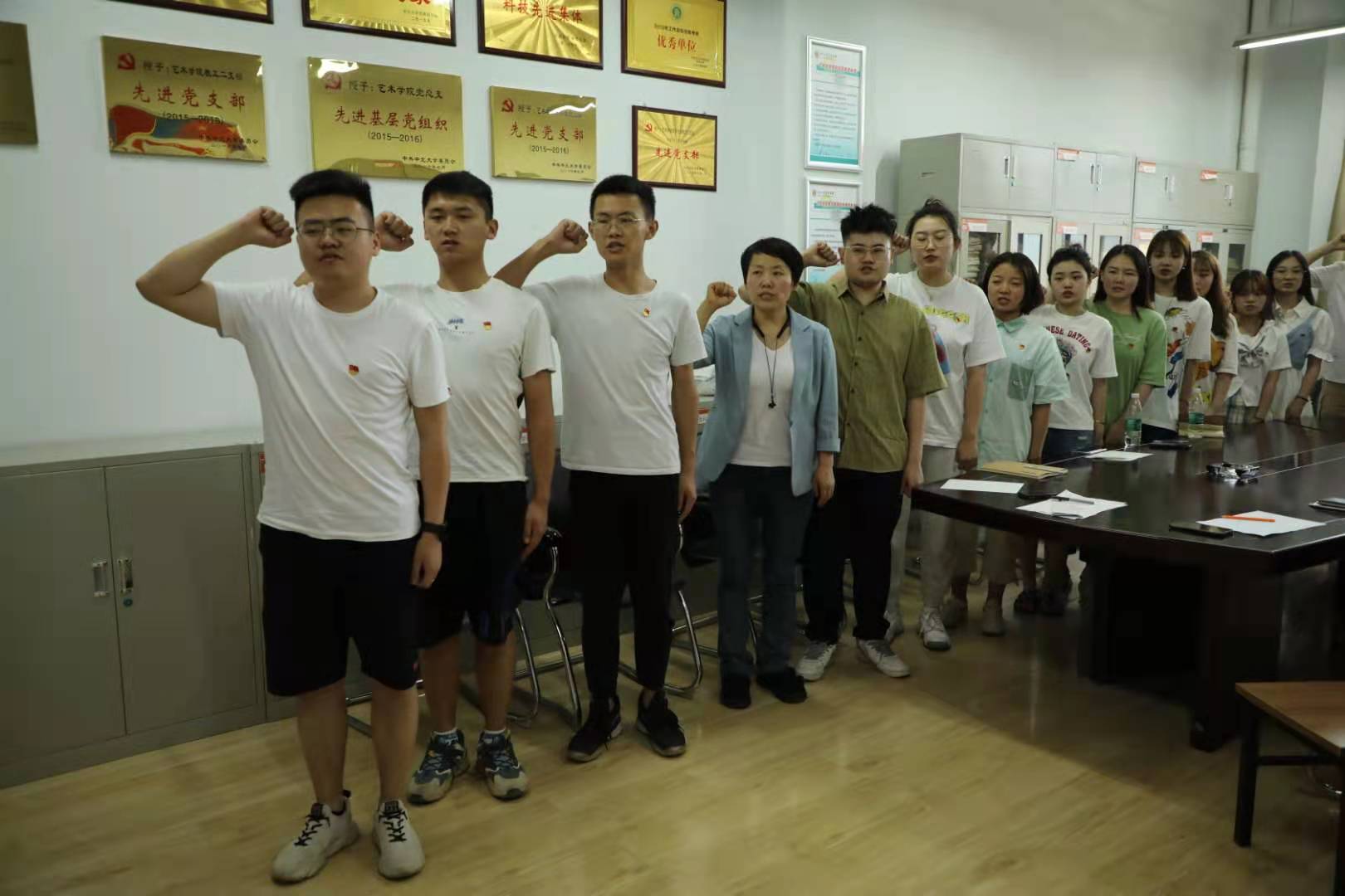 随后,为进一步增强毕业生党员的信念、铭记庄严承诺和坚定决心,党员代表吴有磊带领与会同志重温了入党誓词。大家面向党旗,举起右拳,庄严宣誓。回顾铮铮誓言,坚定理想信念,牢记初心使命。