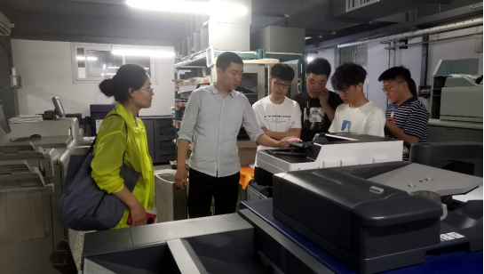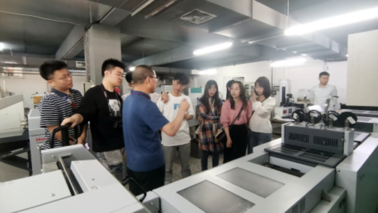 2021年5月29日上午,中北大学艺术学院武敏老师带领2020届研究生赴承方开展印刷实践。承方负责人方杰经理结合印刷工艺、材质、流程等,向同学们逐一介绍了数码印刷及UV印刷技术等。通过参观各类机电一体自动化产品、数控设备、工艺品、打印设备和装订设备,同学们了解到印前和印后的延续,并学习到印刷新技术、不同种类的印刷材质以及工艺。参观过程中,方经理结合公司的陈列品,向同学们介绍了各类设备的功能和各自的特点、制作成本以及适用方向。通过参观,学生们对当今印刷业前沿的发展现状有一定的了解,也拓展了设计作品结合物料表现环节的知识,为设计制作提供了必要的知识补给。