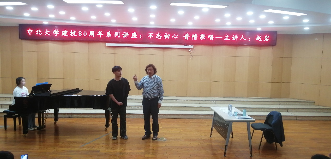 5月24日下午16:00,在艺术学院东音乐厅举办了庆祝中北大学建校八十周年系列学术讲座《不忘初心晋情歌唱》,由低男中音歌唱家赵岩先生主讲。