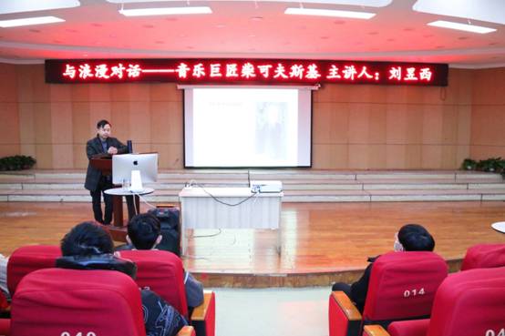 2021年11月30日下午16:10,由中北大学教务处、共青团中北大学委员会主办,艺术学院承办的美育教学沙龙活动“与浪漫对话—音乐巨匠柴可夫斯基”在艺术学院东厅举办。本次沙龙由我校艺术学院青年教师、旅俄青年小提琴演奏家、圣彼得堡国立音乐学院小提琴博士刘昱西老师开讲, 化学工程与技术学院党委书记廖海洪、化学工程与技术学院和艺术学院师生代表等共同聆听了此次讲座。
