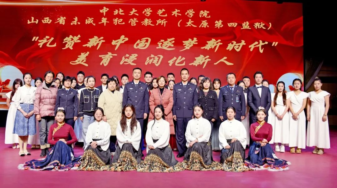 随后,艺术学院开展以“礼赞新中国 逐梦新时代”为主题的美育浸润化新人帮教演出。节目形式多样,包括小合唱、器乐演奏、朗诵和舞蹈等,充分展现了艺术学子的青春活力和专业技能,彰显了向上向善的精神力量,弘扬了感恩励志的社会正能量。这些节目激发了服刑人员焕发新生的潜能,为教育改造工作营造了积极的氛围。演出结束后,艺术学院师生在管教所领导及干警的陪同下,参观了服刑人员休息生活、文艺活动、心理咨询等场所,对管教工作有了更直观地了解。