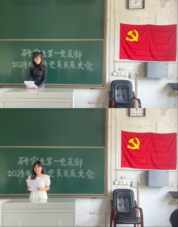 2024年6月20日上午,艺术学院研究生第一党支部在12号楼三层本科生教室召开2024年春季党员发展大会。大会讨论2位预备党员贾泓琳、宋楠按期转为中共正式党员的问题。支部共有党员25名,应到25名,实到25名,未到0人。应到会有表决权的正式党员19名,实到会有表决权的正式党员19名。有表决权的正式党员到会人数超过应到会有表决权人数的半数,符合会议规定人数。