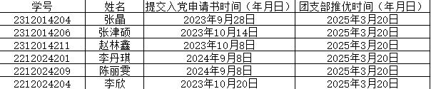 本科生第一党支部于2025年4月7日召开了支部委员会,应到会正式党员3人,实到3人,经票决一致同意确定张津硕等6名同志为入党积极分子。