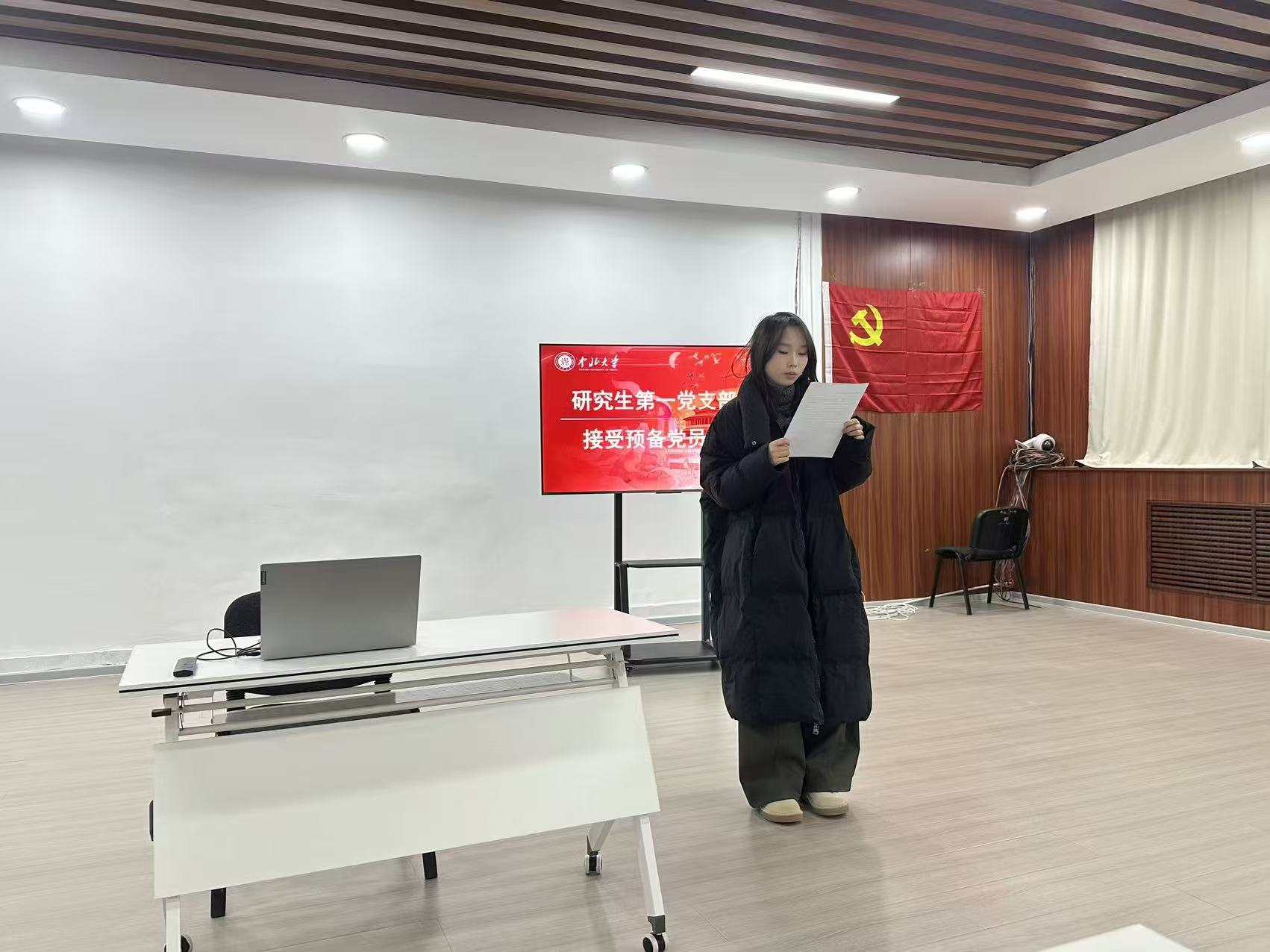 会议第四项,由研究生第一支部书记王哲煊同志代表支部委员会报告张文卓、魏佩佩、杨春白雪、赵彩霞、张宇莹、席洋6名同志的的审查情况。