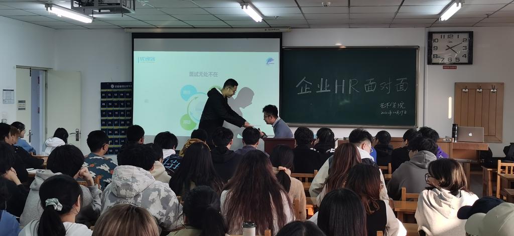 10月29日16时在16502教室,学院招就中心邀请了山西优逸客科技有限公司王鑫涛经理进校园开展“HR面对面”活动。出席本次活动有艺术学院党委副书记田维飞老师、学生科科长夏志丽老师以及全体2022届视觉传达设计专业毕业生。