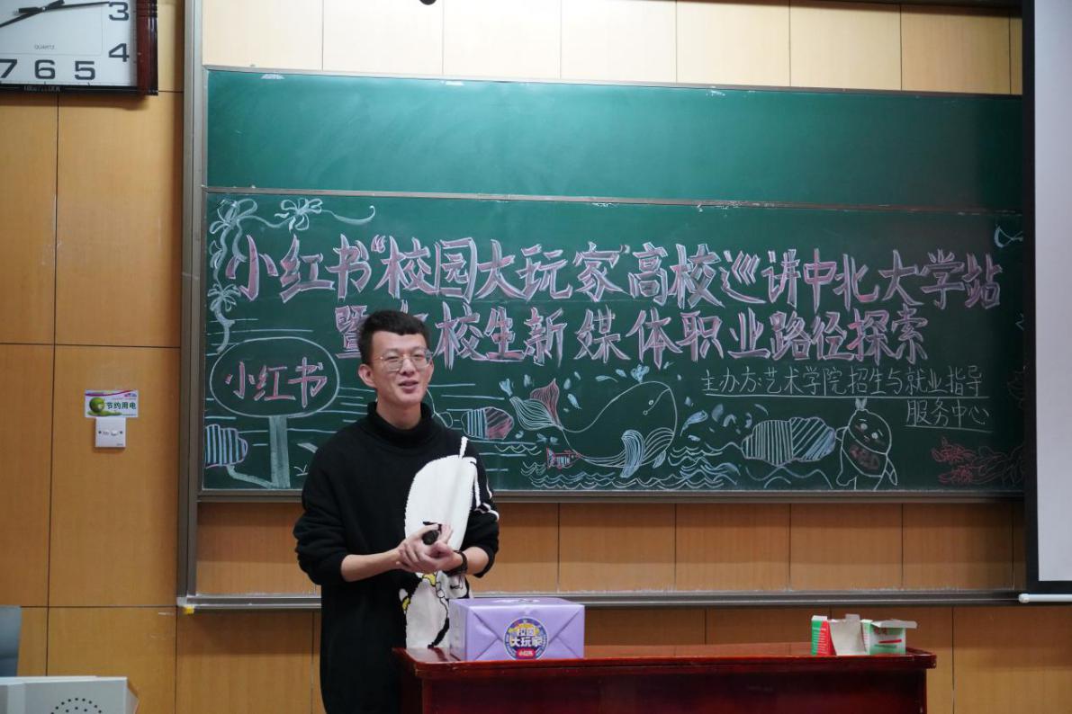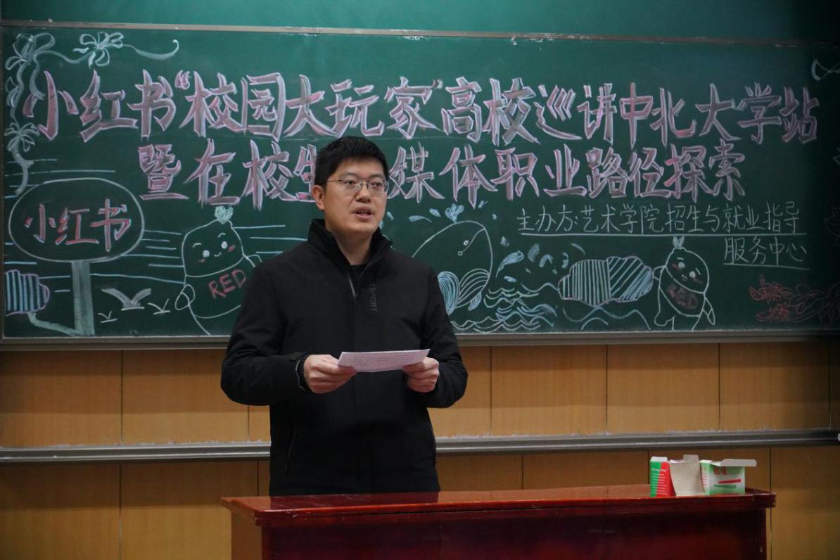 小红书作为一个生活方式平台和消费决策入口,宣讲会现场气氛十分热烈,全场座无虚席。出席本次宣讲会的有小红书校园项目负责人任少杰先生,小红书内容部运营经理中北大学艺术学院16届校友白睿桦学长。中北大学艺术学院党委副书记田维飞、原宣传部江丽红老师,艺术学院学生科科长夏志丽老师。