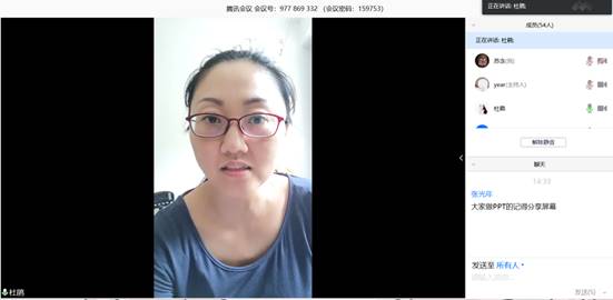 田维飞老师结合学院学生工作实际情况做总结发言。首先,田老师对疫情期间团委学生会开展的工作给予肯定,并针对这一学期团委学生会工作所面临的新形势重点做出了工作部署,同时田老师以赵雪静、赵坤亮等优秀毕业学生干部为例,勉励学生干部们提高政治站位、思想觉悟、树立大局意识、责任意识,加强师生沟通、日常交流。最后,田老师强调团委学生会一定要凝心聚力、精诚团结、以只争朝夕,时不我待的精神争创一流学生组织。
