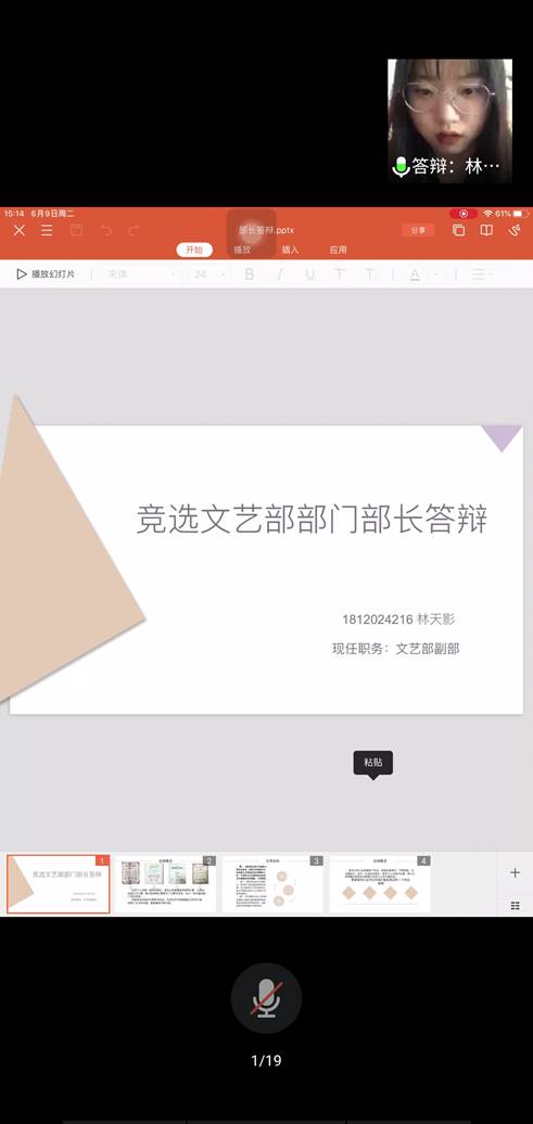 2020年6月9日下午,艺术学院团委通过腾讯会议举行了团委学生会后备学生干部答辩会。会议由学生会主席张光年主持,艺术学院党委副书记田维飞、团委书记杜鹃、学生科副科长吕超、辅导员刘维佳、王帅,本届主席团成员及团委学生会各部长参加了此次答辩。