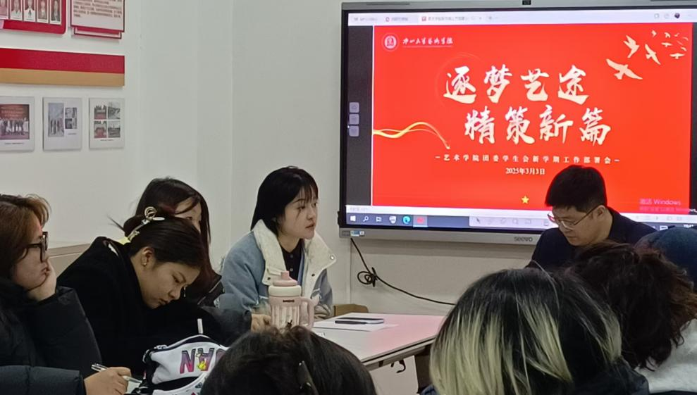 青春热血燃希望,砥砺前行显担当。团结一心创佳绩,共谱华章谱新篇。2025年3月3日晚七点,我院在09519会议室召开2025年春季学期团委学生会工作部署会,艺术学院党委副书记田维飞,团委学生会负责教师王家乐及团委学生会全体骨干出席会议。