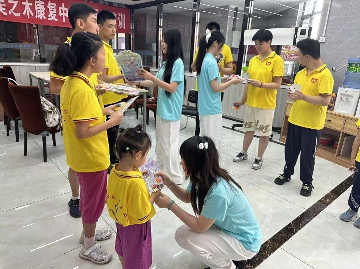 在实践过程中,实践队成员们通过绘画、手工制作和日常陪伴等活动,与特殊儿童建立了紧密互动。在与孩子们的交流与观察中,实践队成员深入感受到特殊教育工作的重要性和挑战性,理解了特教教师在教育过程中所付出的耐心与专业,同时体会到艺术教育在儿童成长与心理发展中的独特价值。通过这种近距离接触,让同学们对特殊教育有了更加全面和深刻的认识。